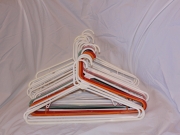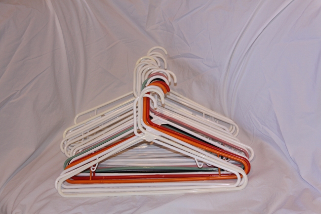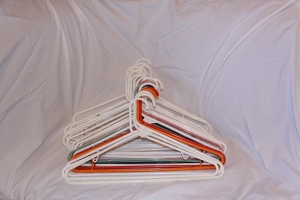 Plastic hangers Assorted colors. Mostly white in color. you will receive a total of 100 in your order....