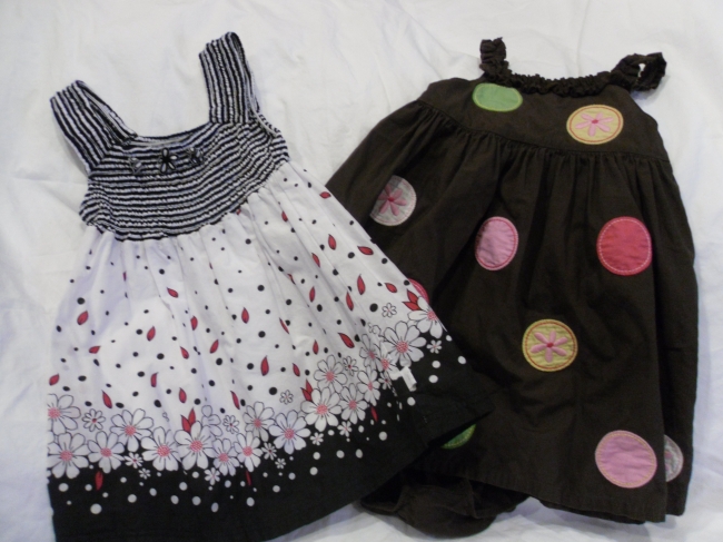 White and black dress w/ floral pattern by Pumpkin Patch 24 monthsSecond dress is brown w/ colorful dots by Gymboree 2T