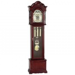 Edward Meyer Grandfather Clock with Beveled Glass Features 31-day movement, beveled glass, decorative side panels, pull-out drawer in the base, large brass finished pendulum with 3 weights. The beautifully crafted wood has a timeless beauty and easily represents the love and attention given to fine furniture by craftsmen who take pride in their work. Each clock includes a winding key and it chimes the hour and once on the half hour. The total measurement is 20-7/8" x 80-1/4" x 10". Some assembly required.