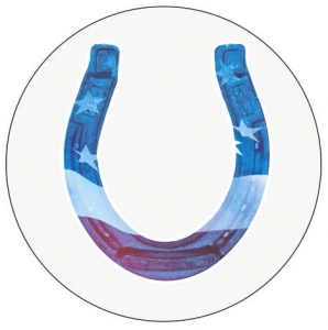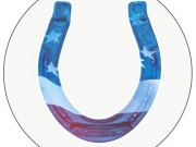 LUCKY HORSESHOE BUMPER STICKER -AMERICAN FLAG STYLE. (3 inch) KEEP YOUR LUCK WITH YOU!!!