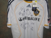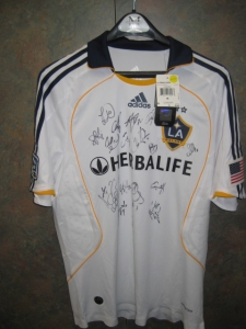 Memorabilia set includes: one (1) LA Galaxy jersey signed by members of the 2010 LA Galaxy team; five (5) autographed player cards from Eddie Lewis, Todd Dunivant, Tristan Bowen, Bryan Jordan, and Omar Gonzalez; four (4) LA Galaxy tote bags; four (4) LA Galaxy tee shirts (XL, L, M, M); four (4) LA Galaxy bracelets; four (4) LA Galaxy key chains; four (4) LA Galaxy pens; and 2010 Media Guide.