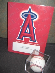 Baseball autographed by Los Angeles Angels starting pitcher Ervin Santana. Santana is known for becoming the first pitcher in franchise history to pitch a shutout in a game to clinch the Western Division.