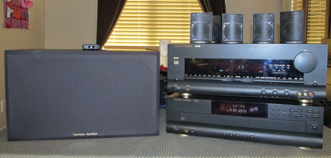 Harman Kardon FL8350 Commpact Disc Changer and Harman Kardon AVR 300 Audio/Video Receiver including subwoofer TS1 with surround sound speaker system. This system includes the speaker wires. It's in good condition.
