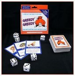 Greedy Greedy is a card and dice game that is enjoyed by players of any age or background. Players compete against each other in an effort to reach 10,000 points first. It is played by 6 or fewer people and typical game time is around 15-20 minutes. Please visit our site for more information, www.highpointgames.com. If you are looking for a larger order we are available to take your call or email. Please contact us at 813-545-9132 or email us at info@highpointgames.com.