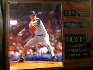 Nolan Ryan Autographed Picture mounted on plack
